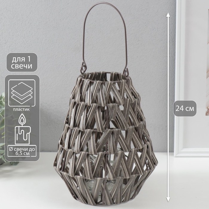 Подсвечник - фонарь на 1 свечу «Зигзаг», пластик, серый, 10×20×24 см