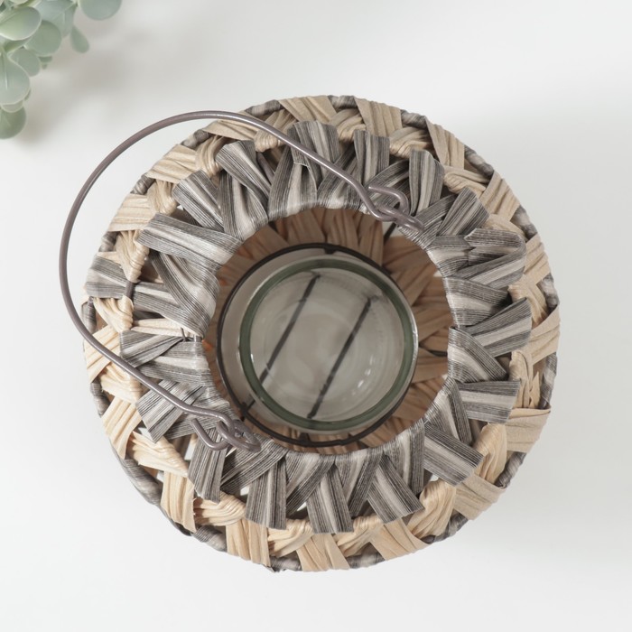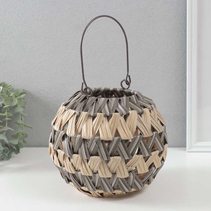 Подсвечник - фонарь на 1 свечу «Зигзаг полосками», пластик, серо-бежевый, 10×21×19 см