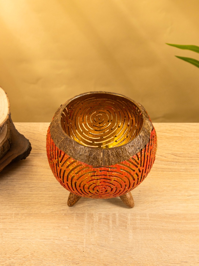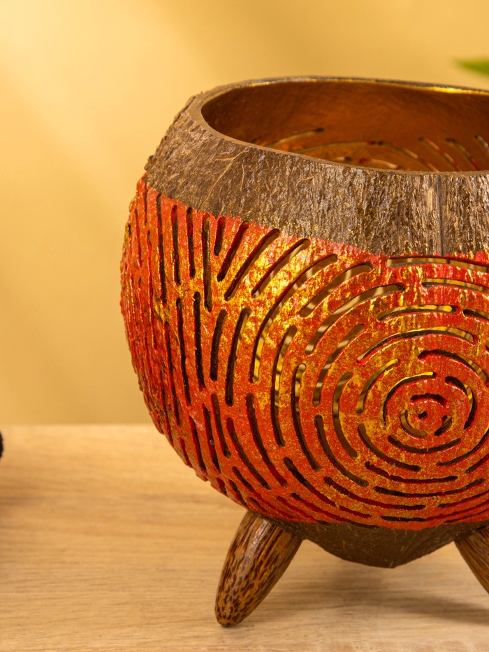 Подсвечник из кокоса, 15×15×13 см, красный