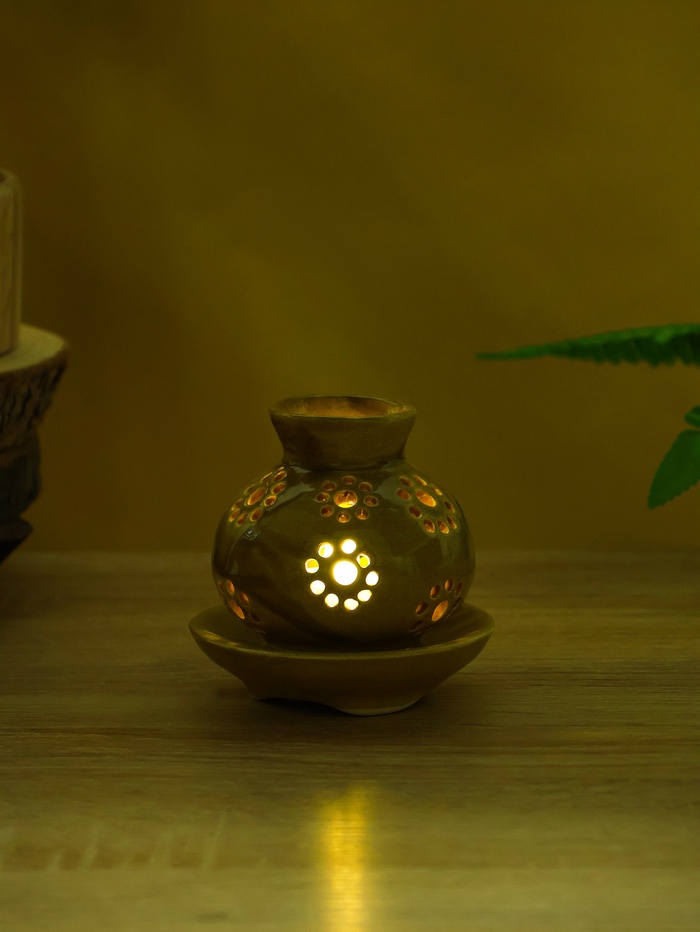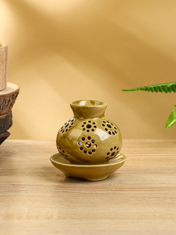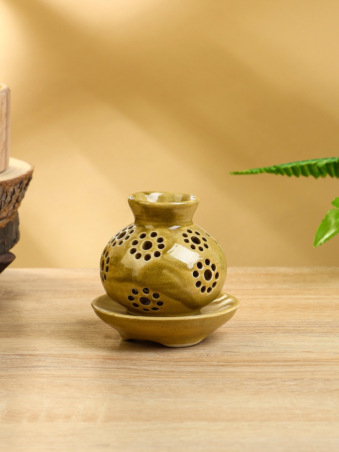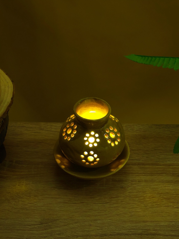 Подсвечник «Кувшин», 9×9×9 см, керамика, горчичный