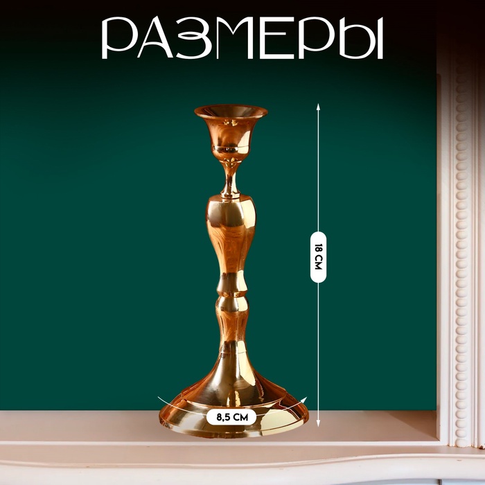 Подсвечник металлический на 1 свечу «Ричард», латунь, 8.5×8.5×18 см