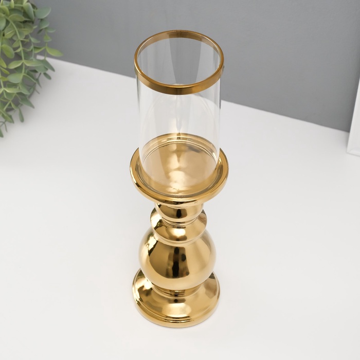 Подсвечник на 1 свечу «Алберо», керамика, стекло, d=7.5 см, золото, 9.5×9.5×35 см