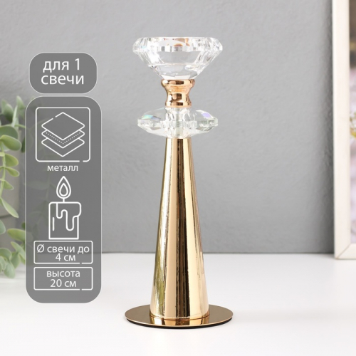 Подсвечник на 1 свечу «Альфия», под золото, d=4 см, 7.5×7.5×20 см