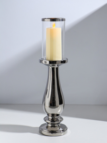 Подсвечник на 1 свечу «Аванти», керамика, стекло, d=8 см, серебро, 10×10×40.5 см