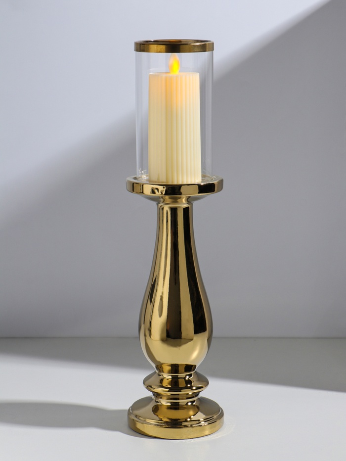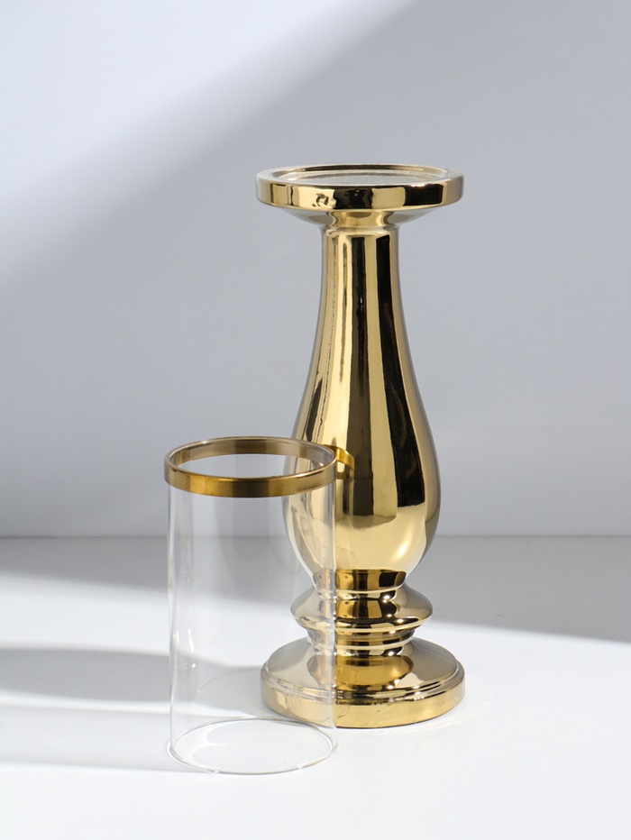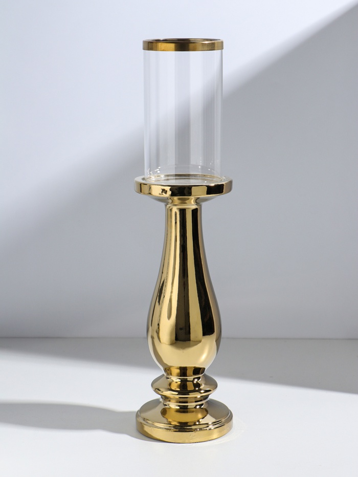 Подсвечник на 1 свечу «Аванти», керамика, стекло, d=8 см, золото, 10×10×40.5 см