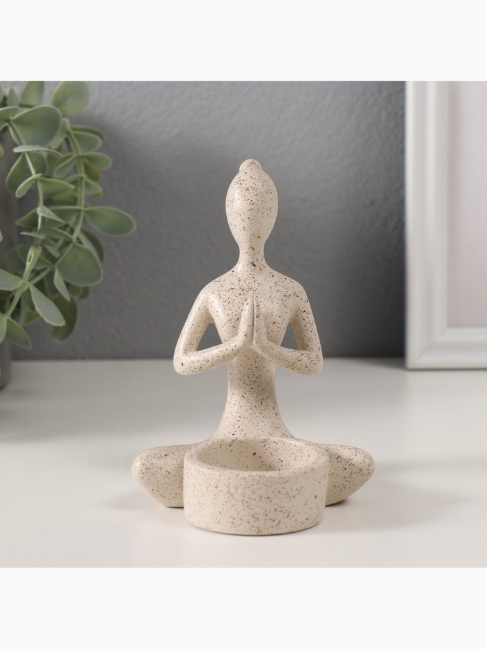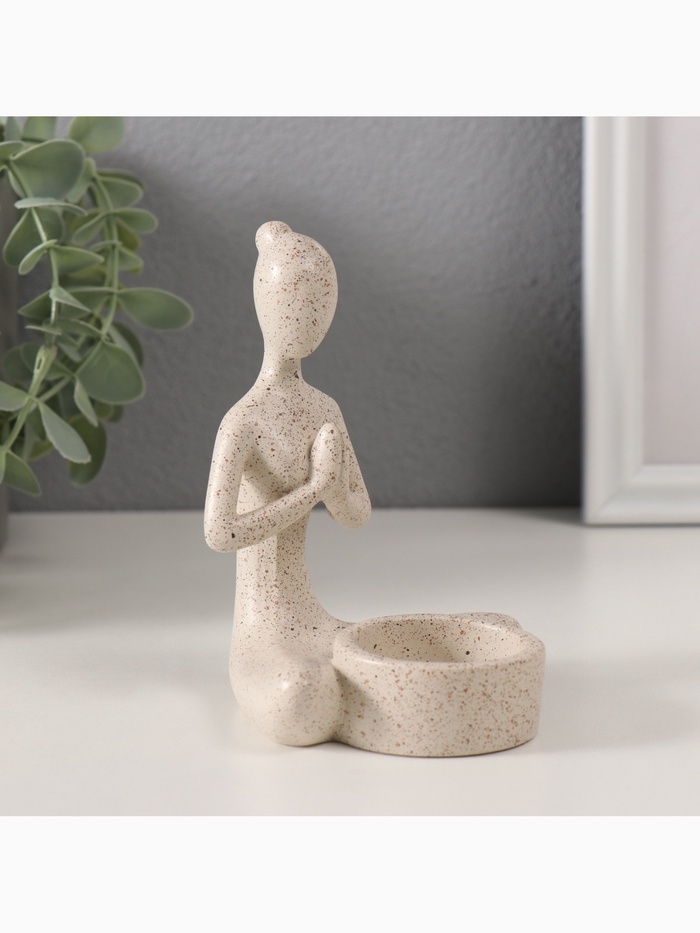 Подсвечник на 1 свечу «Девушка. Приветствие», полистоун, белый в крапинку, 8.5×8.8×11.7 см