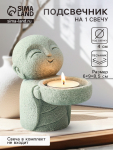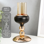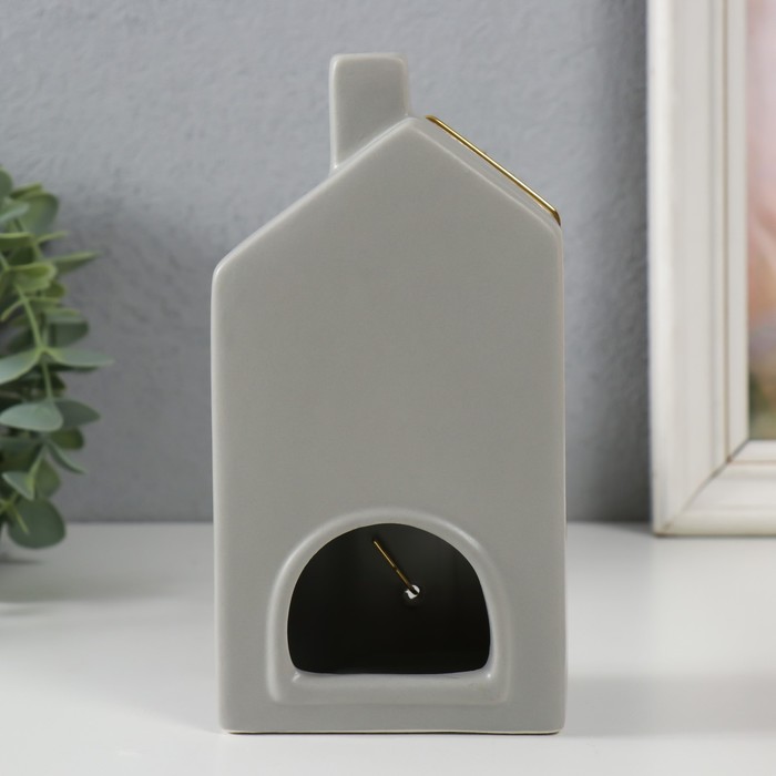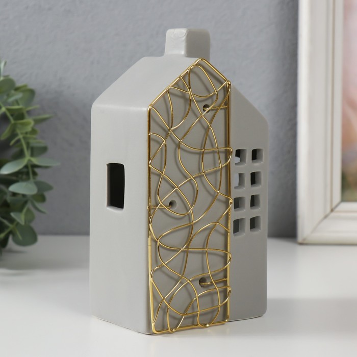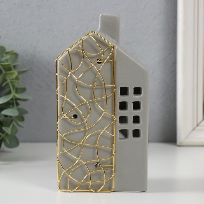 Подсвечник на 1 свечу «Дом», керамика, металл, серый с золотом, 9×6.3×16.7 см