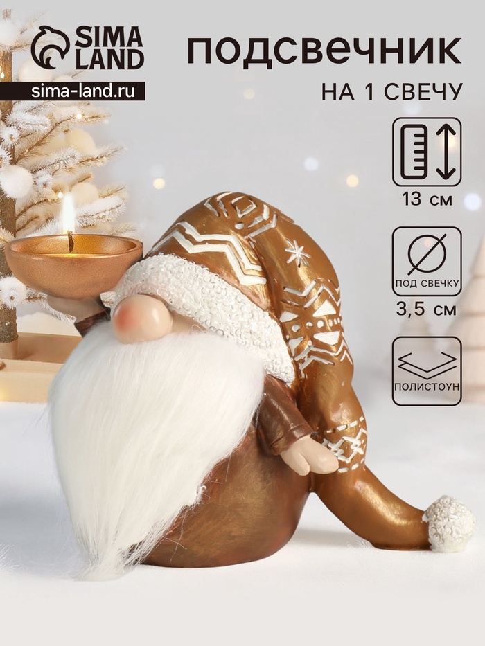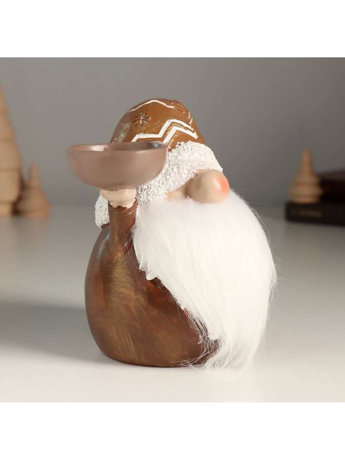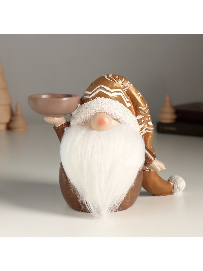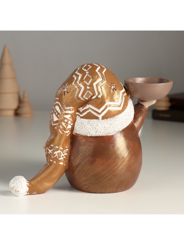 Подсвечник на 1 свечу «Фигурка: Дед Мороз в золотом колпаке с узорами», полистоун, 18×9.5×13 см