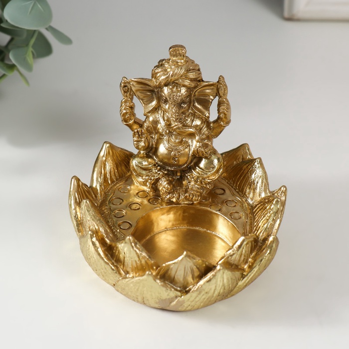 Подсвечник на 1 свечу «Ганеша в лотосе», полистоун, золото, 9×8.2×7 см
