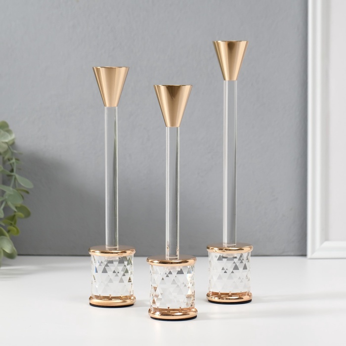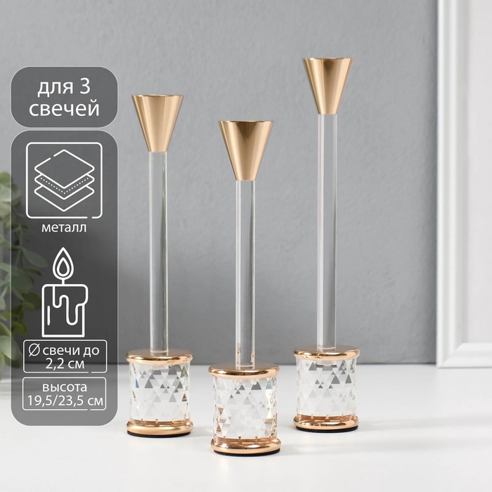 Подсвечник на 1 свечу «Геометрия», d=2.2 см, набор 3 шт., h=23.5 см, 21.5 см, 19.5 см
