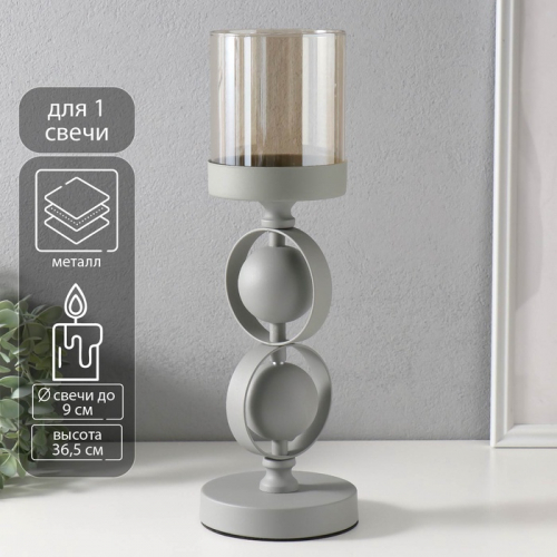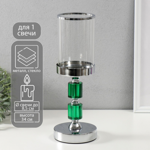 Подсвечник на 1 свечу «Глэдис», на магните, d=8.5 см, под серебро, 11.8×11.8×34 см