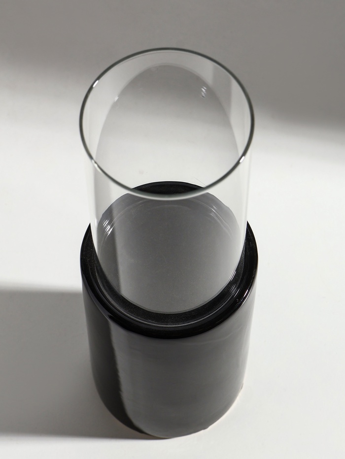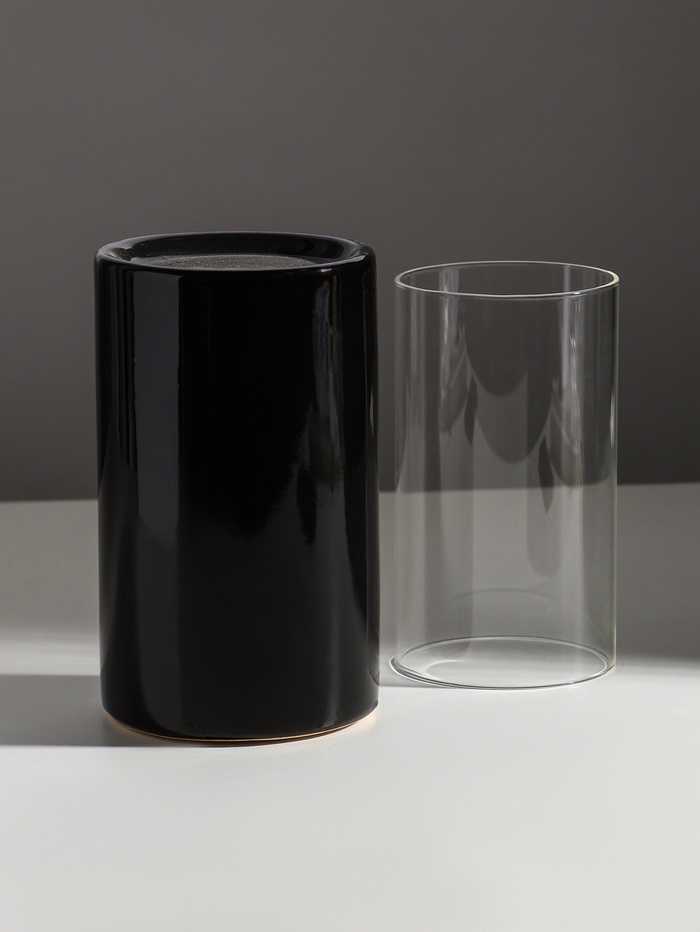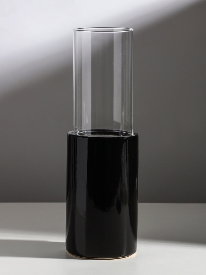Подсвечник на 1 свечу «Хром», керамика, стекло, d=7.5 см, чёрный, 9.2×9.2×29.5 см