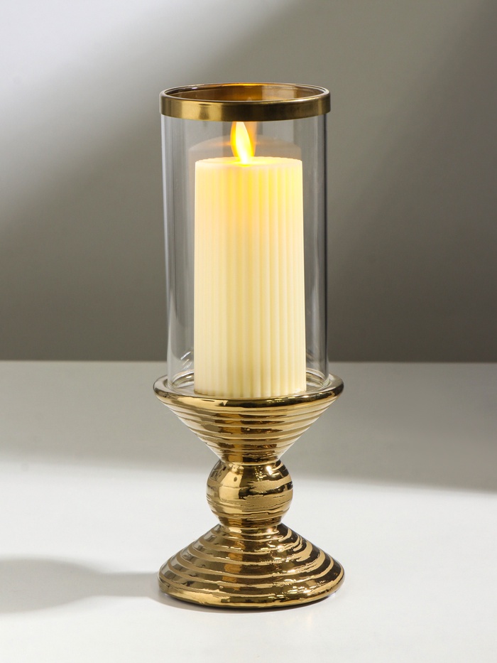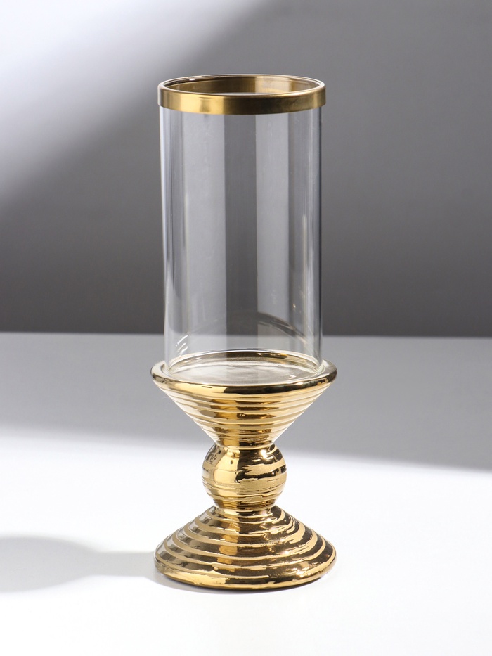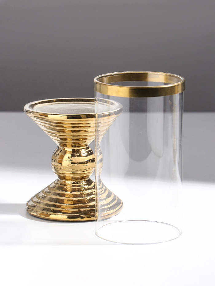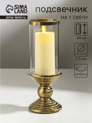 Подсвечник на 1 свечу «Иллюзия. Зебра», керамика, стекло, d=7.5 см, золото, 9×9×24 см