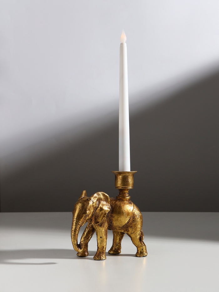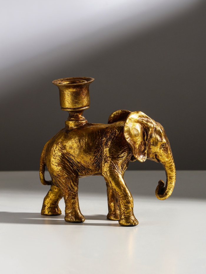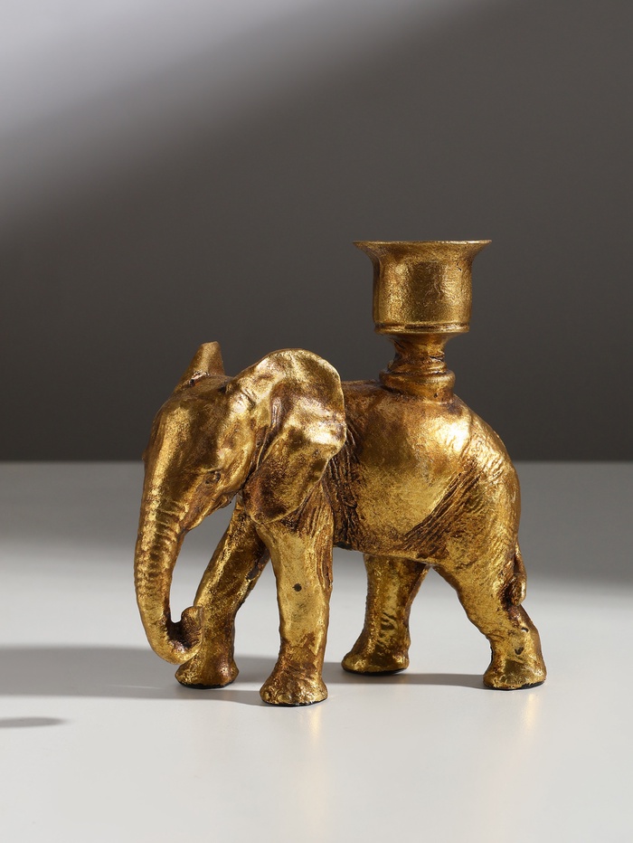 * Элегантный дизайн: золотистое покрытие придает подсвечнику роскошный вид, а изящный слон добавляет нотку экзотики и восточной культуры.