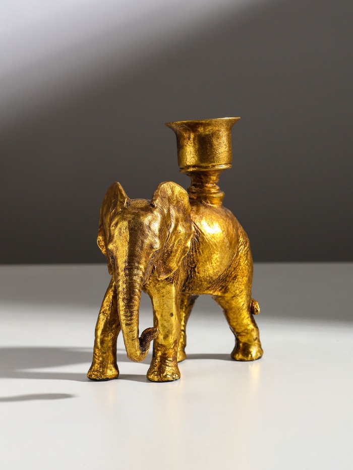 Подсвечник на 1 свечу «Индийский слон», полистоун, золото, 14×6×15 см