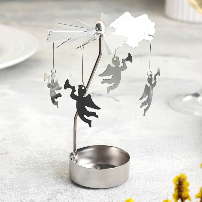 Подсвечник на 1 свечу «Карусель вращающаяся с ангелами», серебряная, металл
