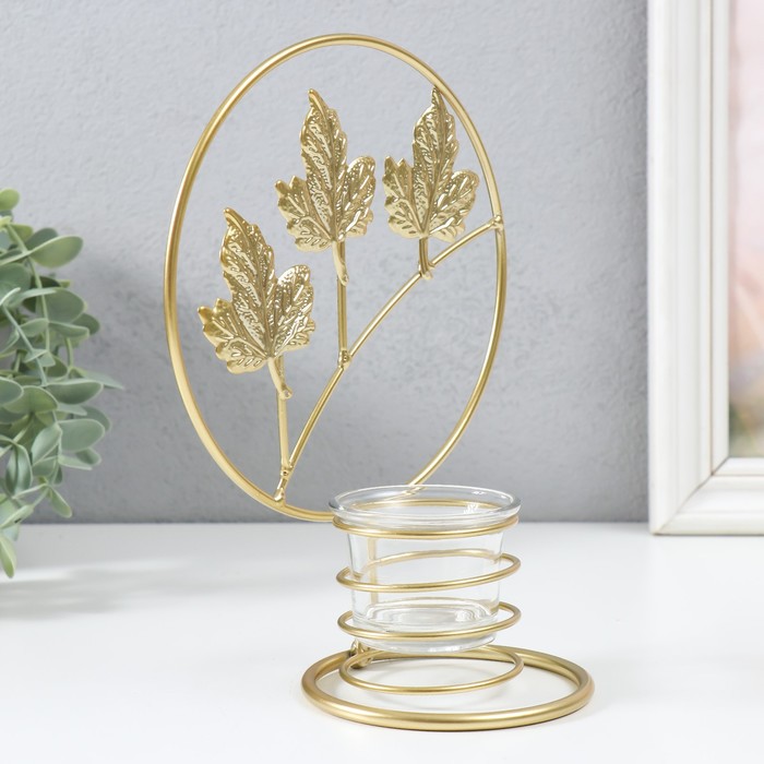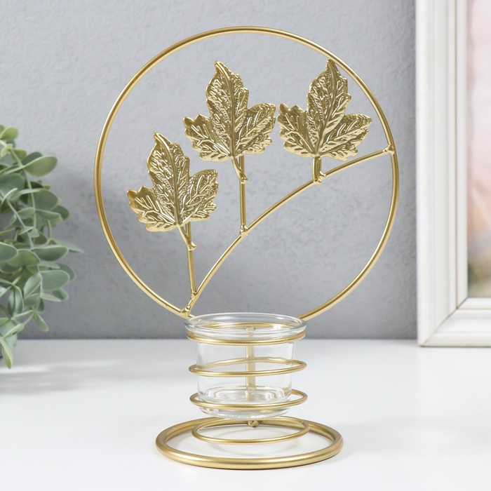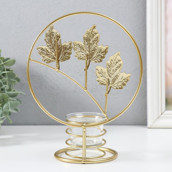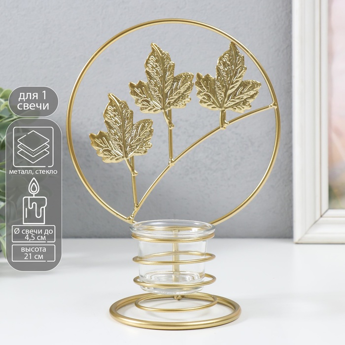 Подсвечник на 1 свечу «Кленовые листья в круге», d=4.5 см, под золото, 16×9.5×21 см
