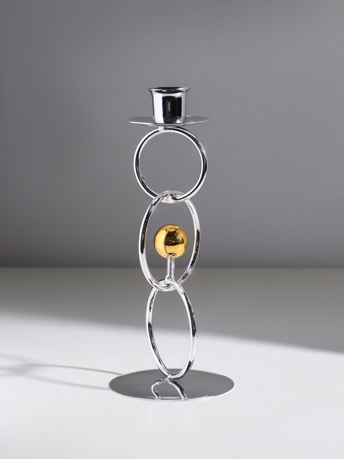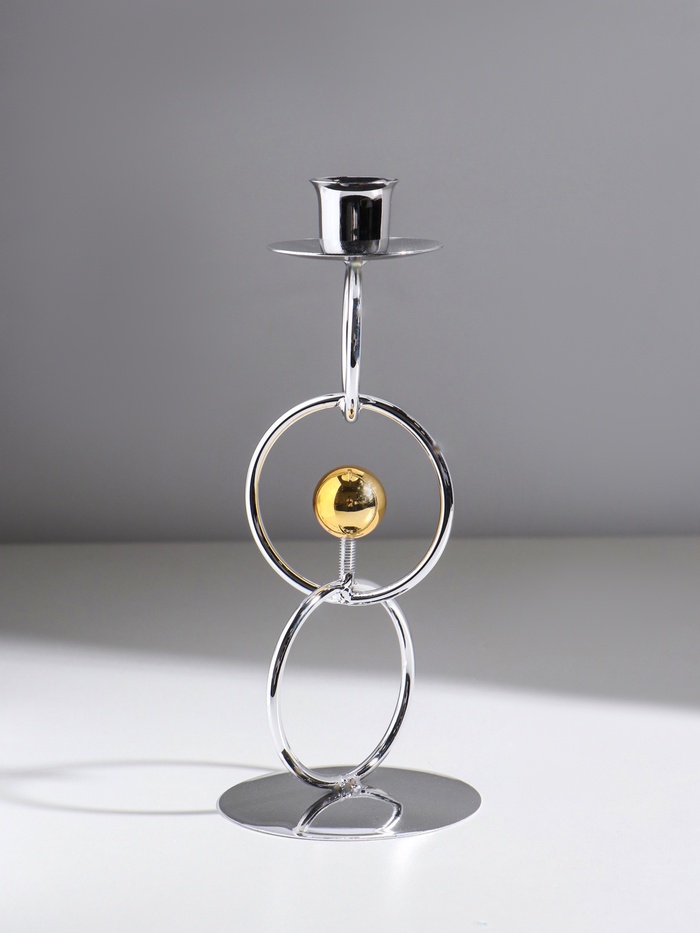 Подсвечник на 1 свечу «Кольца и шарики», металл, под серебро с золотом, d=2.5 см, 9×9×22 см