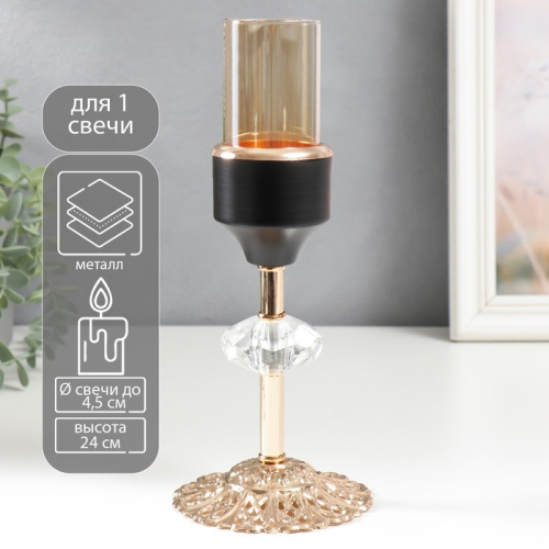 Подсвечник на 1 свечу «Кристалл. Ажурная подставка», под золото, чёрный, 24×10×10 см