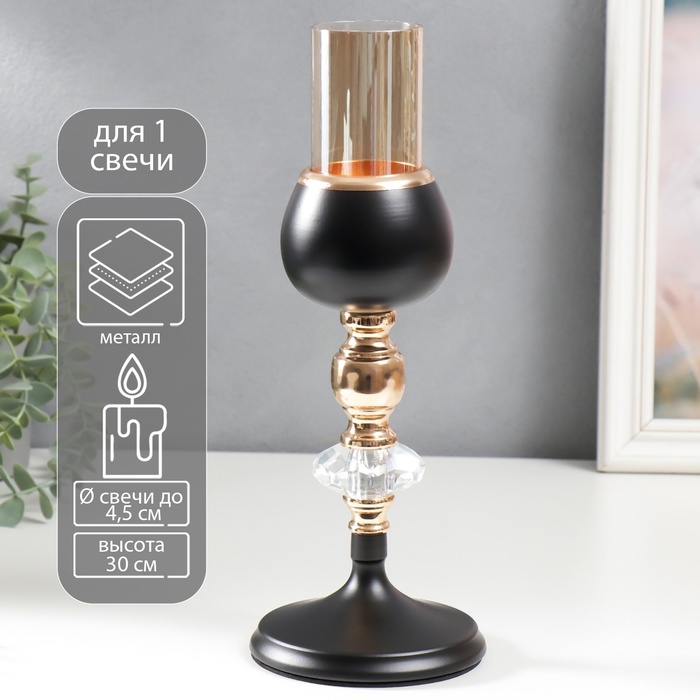 Подсвечник на 1 свечу «Кристалл и шар», под золото, чёрный, 30×11×11 см