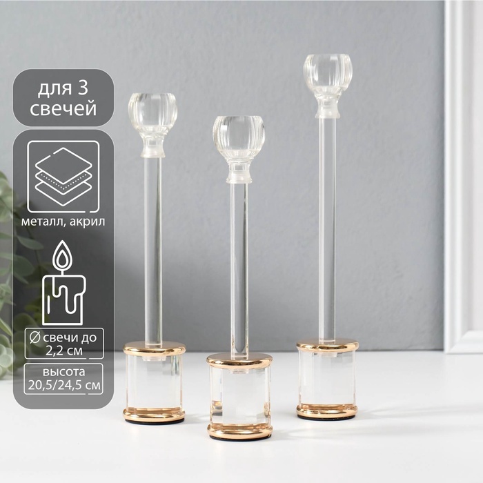Подсвечник на 1 свечу «Квадрия», d=2.2 см, набор 3 шт., h=24.5 см, 22 см, 20.5 см
