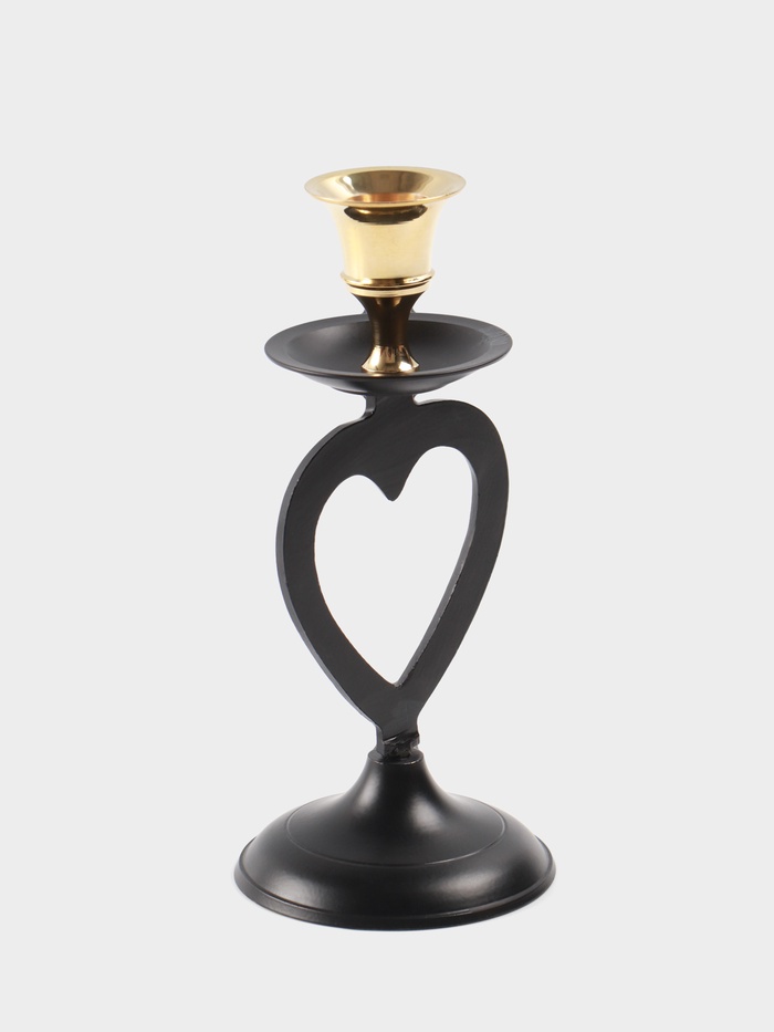 Подсвечник на 1 свечу, латунь, чёрный с золотом, 7×7.5×16.5 см