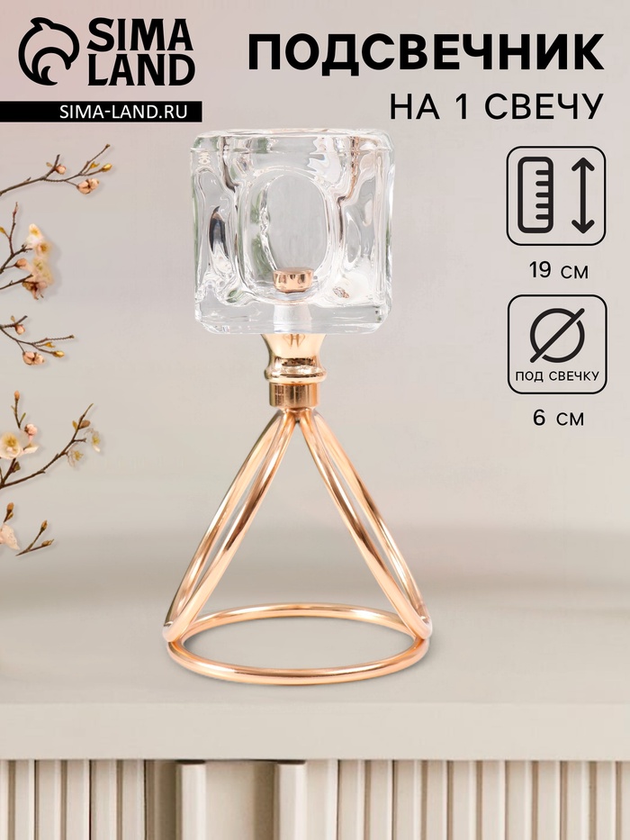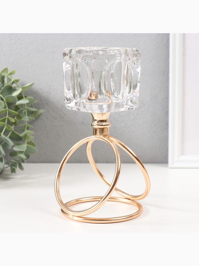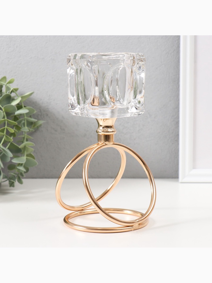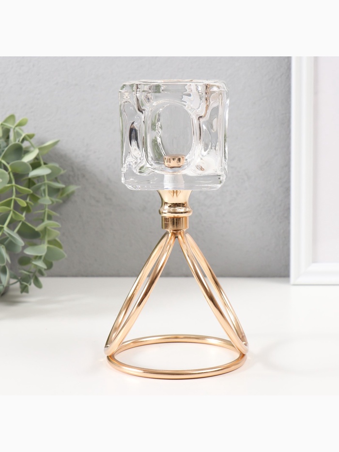 Подсвечник на 1 свечу «Ледяной кубик», d=6 см, под золото, 10×10×19 см