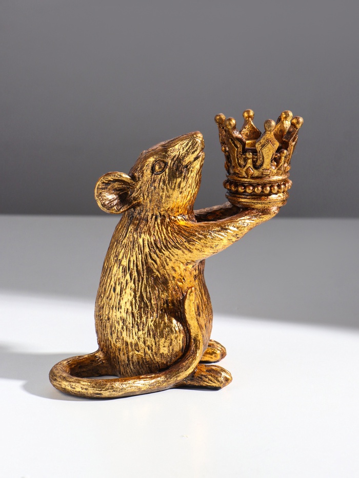 Подсвечник на 1 свечу «Мышка с короной в руках», полистоун, золото, 15.5×8×15.5 см