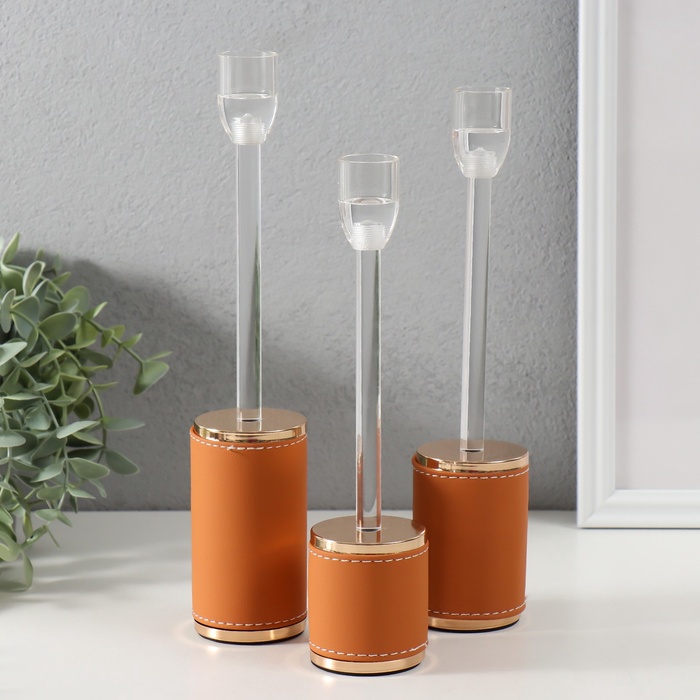 Подсвечник на 1 свечу «Надёжность», d=2.2 см, набор 3 шт., h=27 см, 24.5 см, 23 см