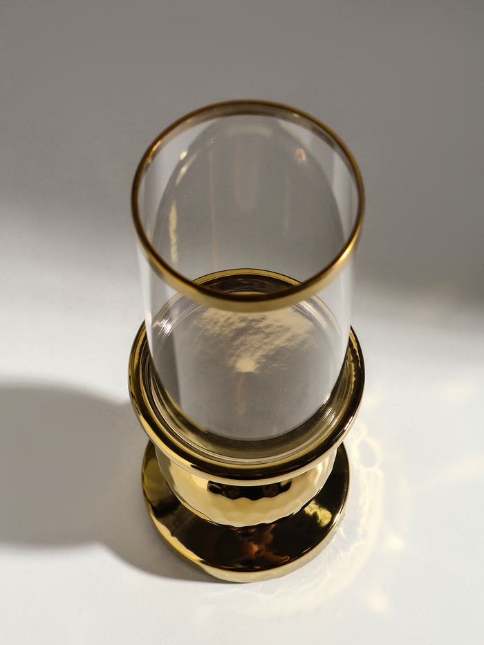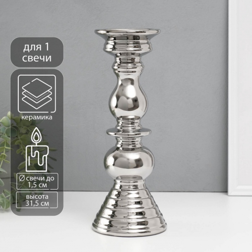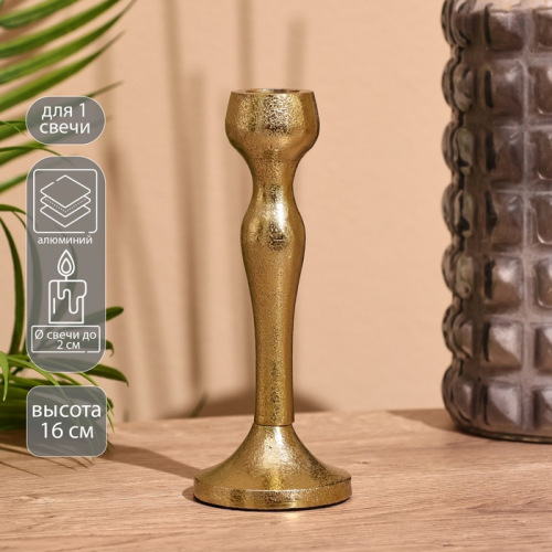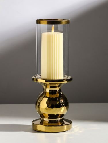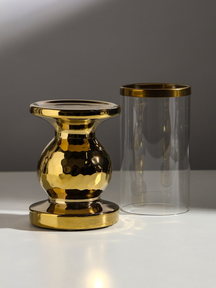 Подсвечник на 1 свечу «Нуар», керамика, стекло, d=8 см, золото, 10×10×27 см