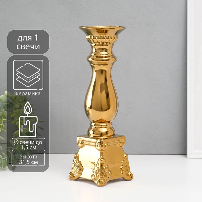 Подсвечник на 1 свечу «Нуово», d=1.5 см, золото, 10×10×31.5 см