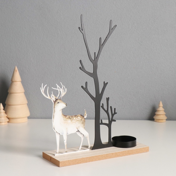 Подсвечник на 1 свечу «Олень у дерева», d=4 см, металл, дерево, 6×19×23.5 см
