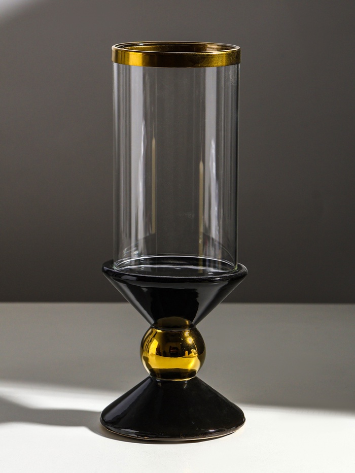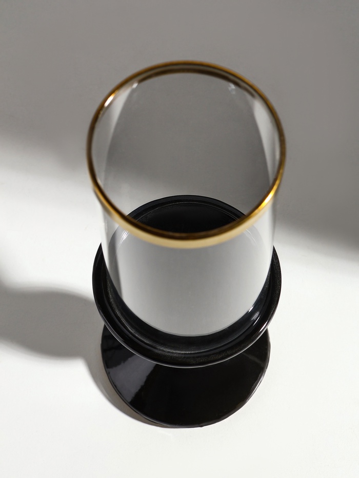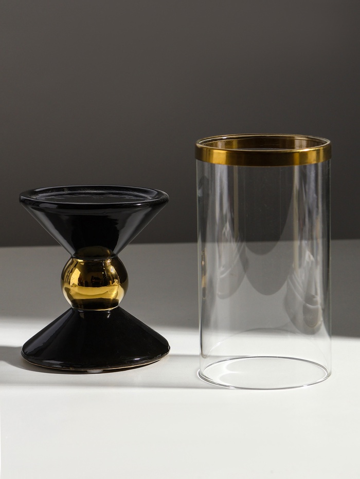 Подсвечник на 1 свечу «Параллели», керамика, стекло, d=7.5 см, чёрный с золотом, 9.5×9.5×24 см
