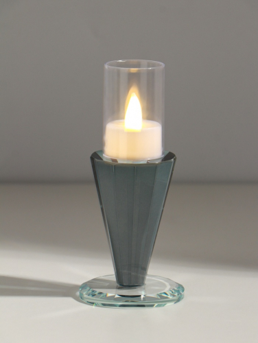 Подсвечник на 1 свечу «Пирамида с гранями», стекло, серый, d=7 см, 7×7×9.5 см