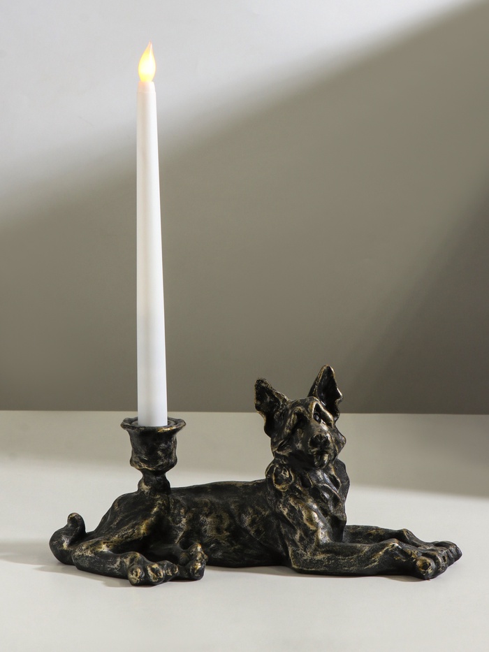 * Элегантный дизайн: форма овчарки и бронзовый цвет придают подсвечнику уникальный и стильный вид.