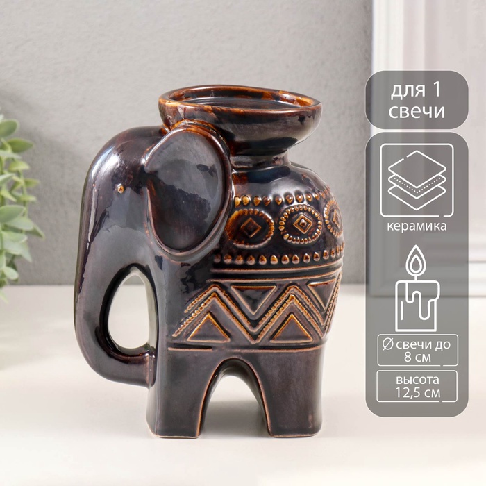 Подсвечник на 1 свечу «Слонёнок. Этнические узоры», коричневый, 10×14.5×18 см