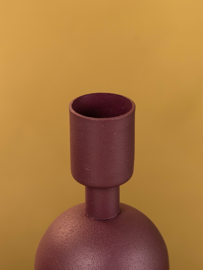 * Насыщенный бордовый цвет: Глубокий тёплый оттенок делает подсвечник заметным акцентом, даже когда свеча не зажжена.