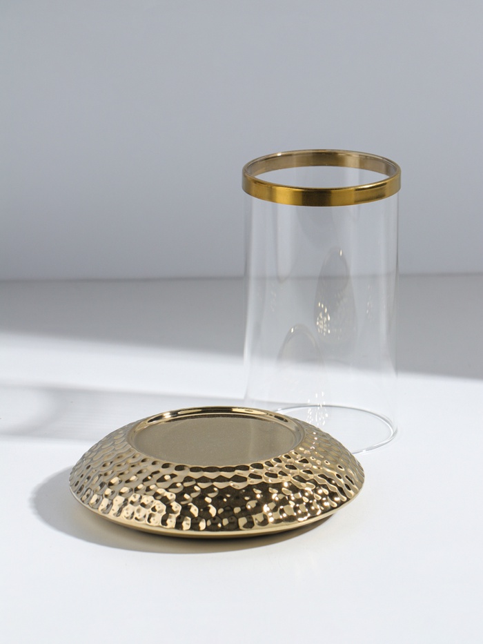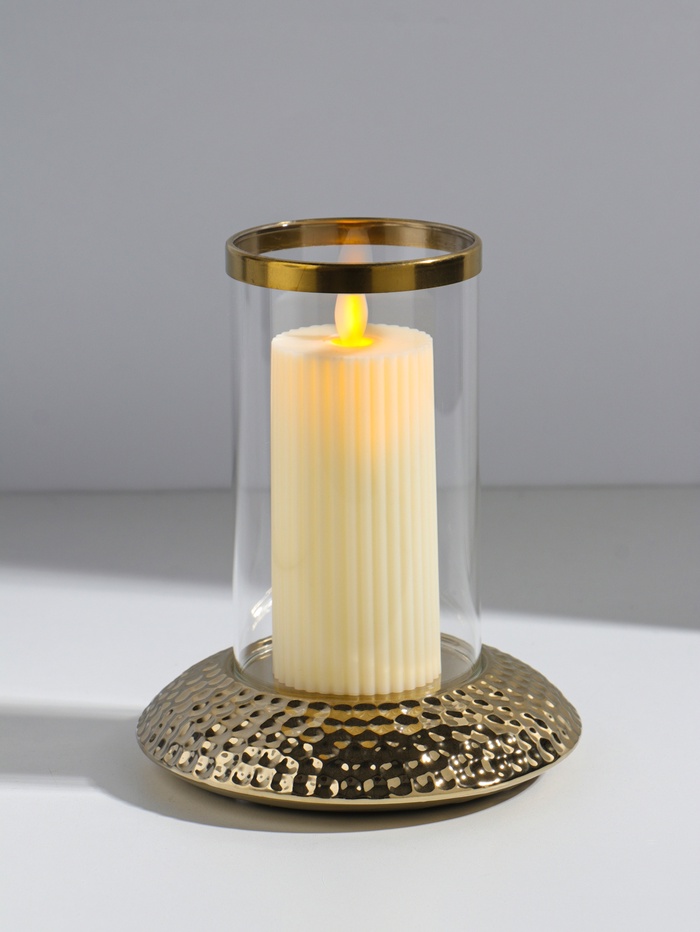 Подсвечник на 1 свечу «Верна», керамика, стекло, d=8 см, золото, 14.5×14.5×17.5 см