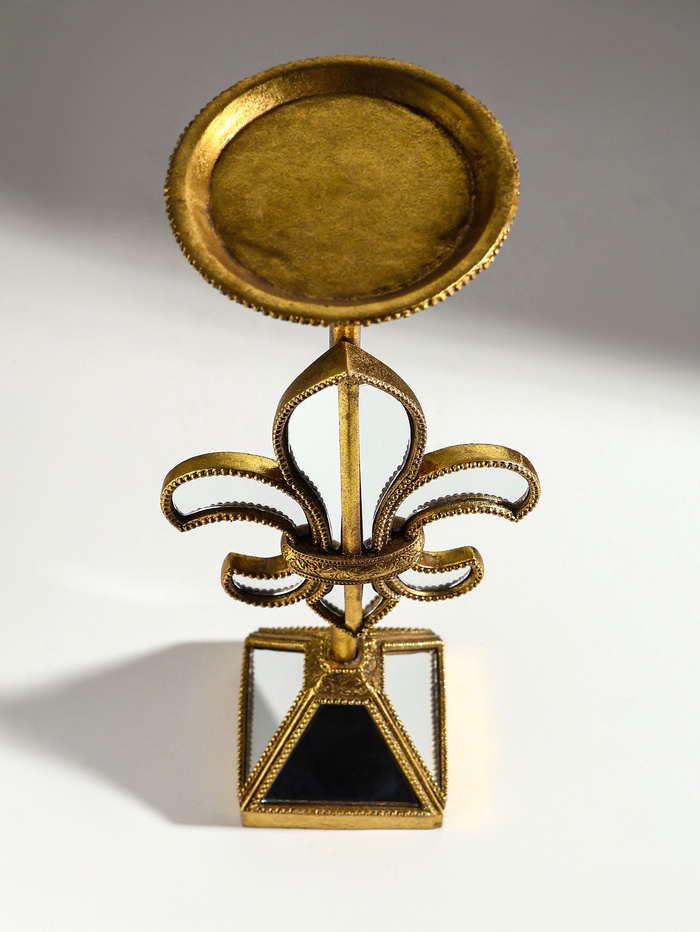 * Элегантный дизайн: форма зеркальной геральдической лилии и разноцветный оттенок придают подсвечнику уникальный и стильный вид.