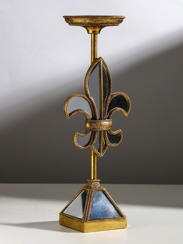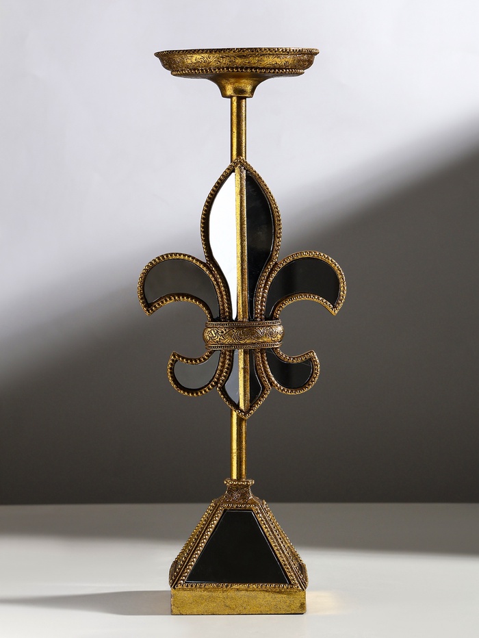 Подсвечник на 1 свечу «Зеркальная геральдическая лилия», полистоун, 14×11×38.5 см