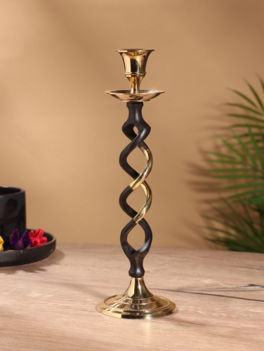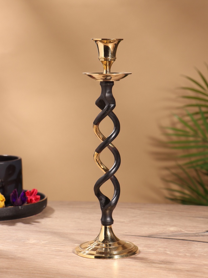 Подсвечник на 1 свечу «Золотое сечение», латунь, чёрный с золотом, 7×7×24.5 см