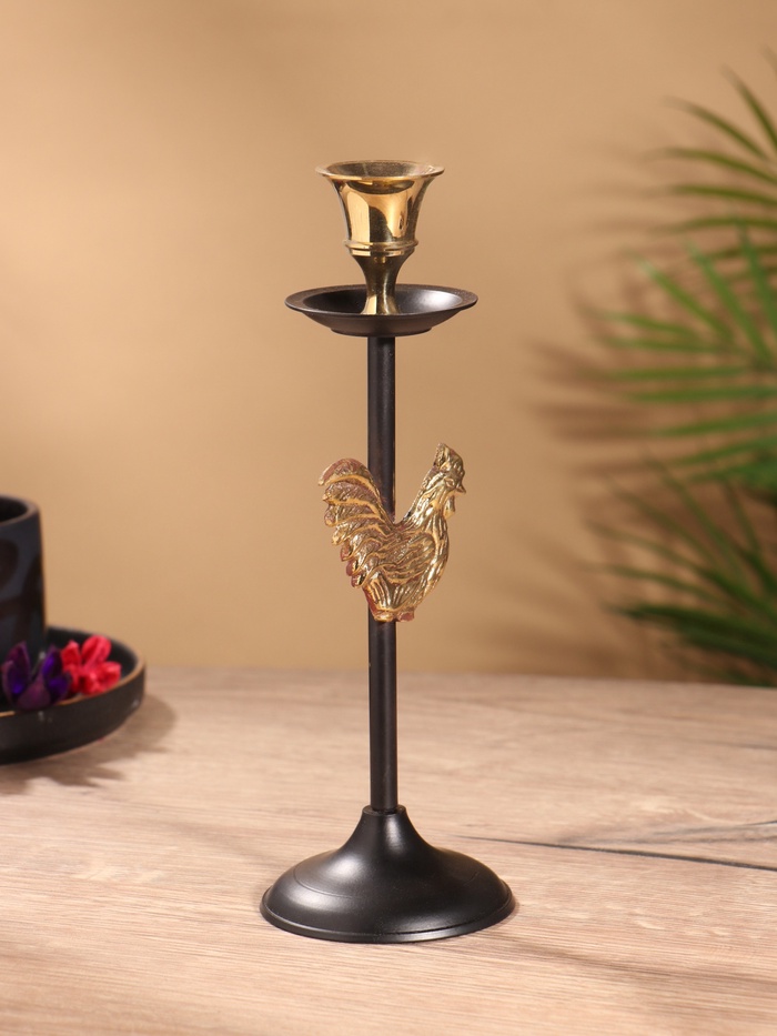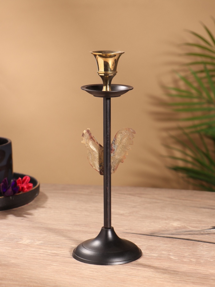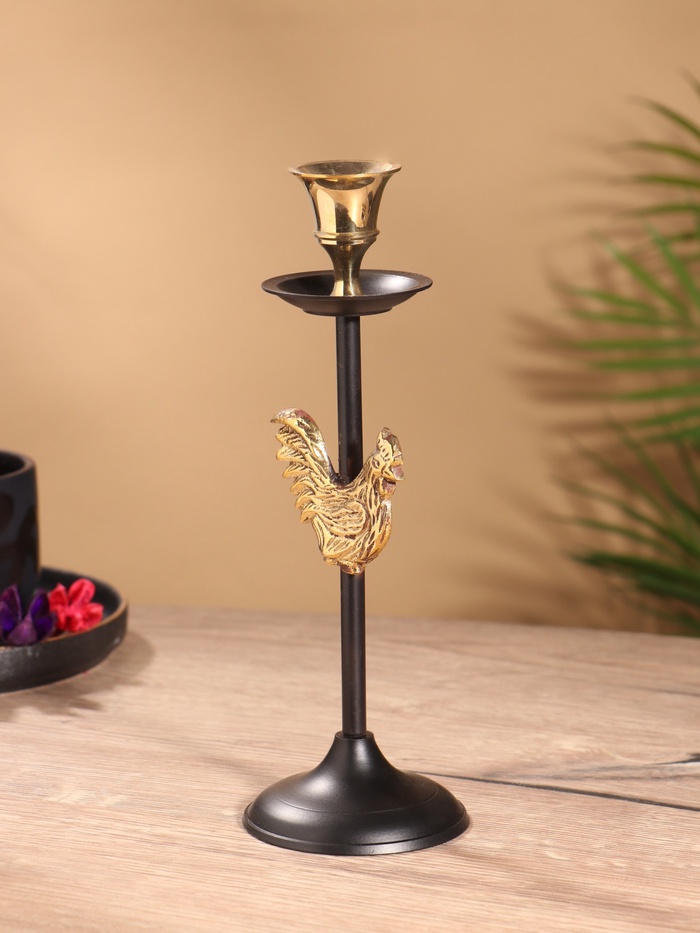 Подсвечник на 1 свечу « Золотой гребешок», латунь, чёрный с золотом, 6×6×21.5 см