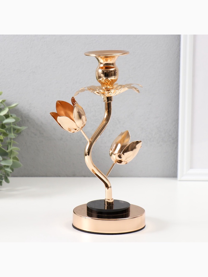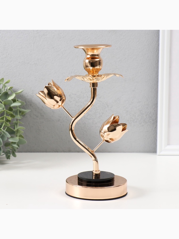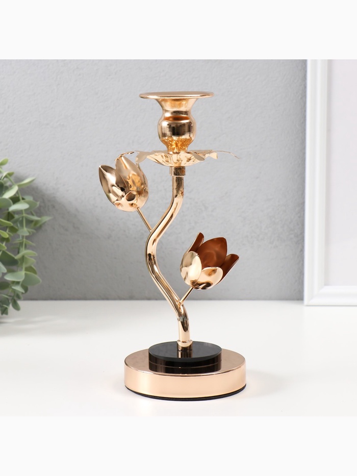 Подсвечник на 1 свечу «Золотые тюльпаны», d=2-6 см, металл, акрил, 10×10×22.5 см