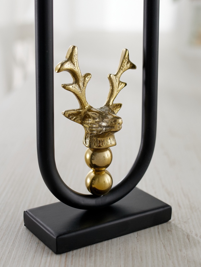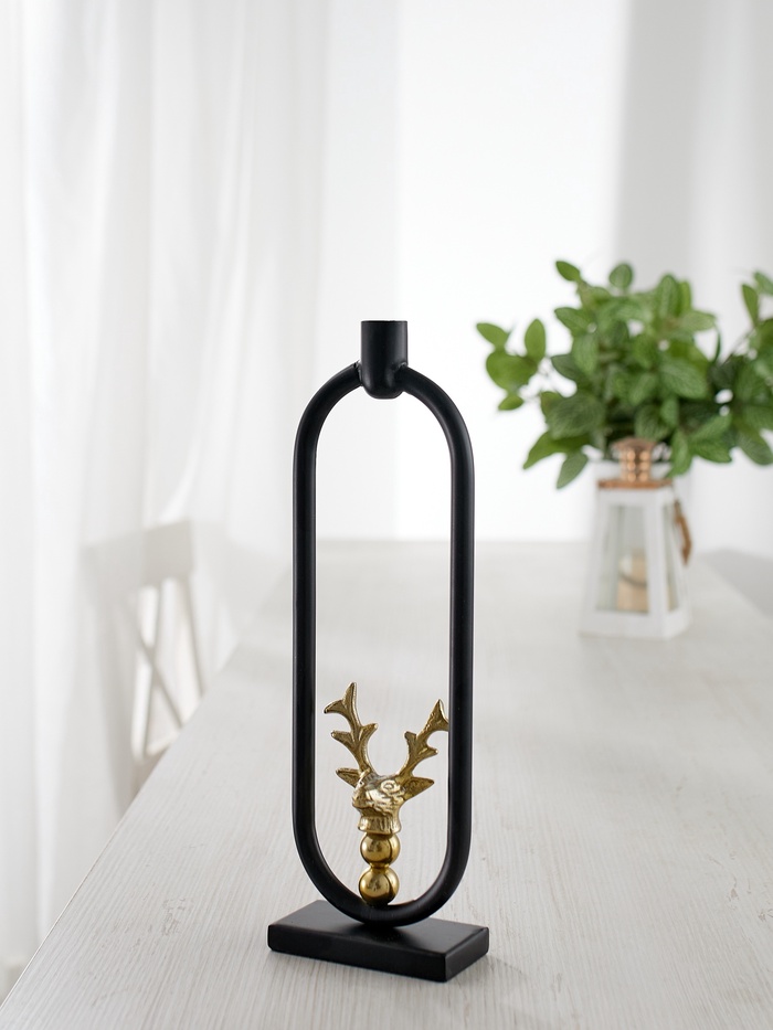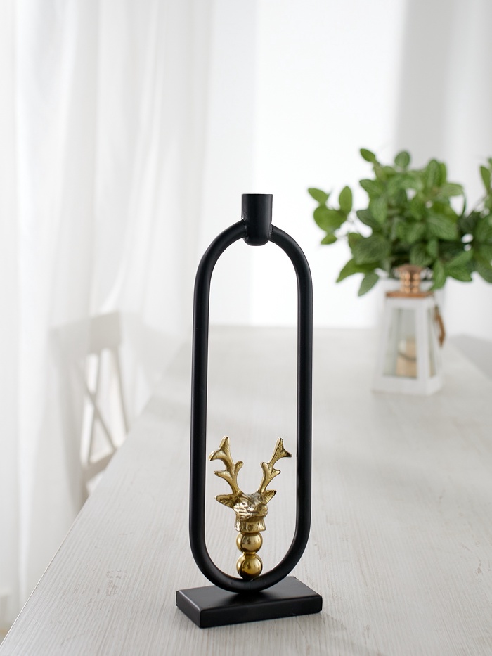 Металлический подсвечник «Олень», 34 см — новогодний акцент с характером. Его силуэт вдохновлён зимними сказками, но исполнен в современной фьюжн-манере: без излишней детализации, зато с выразительной линией и присутствием. Такой подсвечник не просто держит свечу — он задаёт настроение всему интерьеру, будто напоминая: за окном может быть метель, но в доме — тишина и свет.