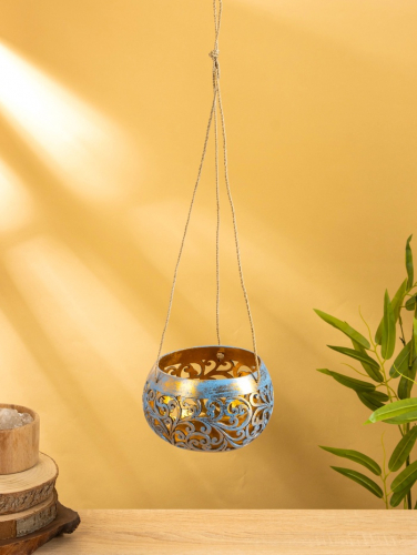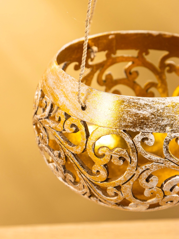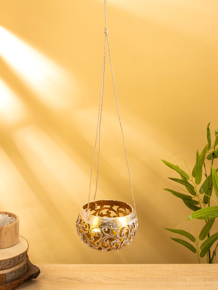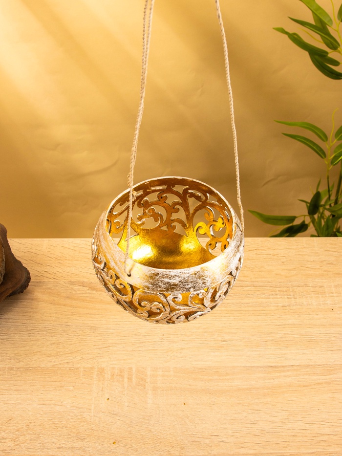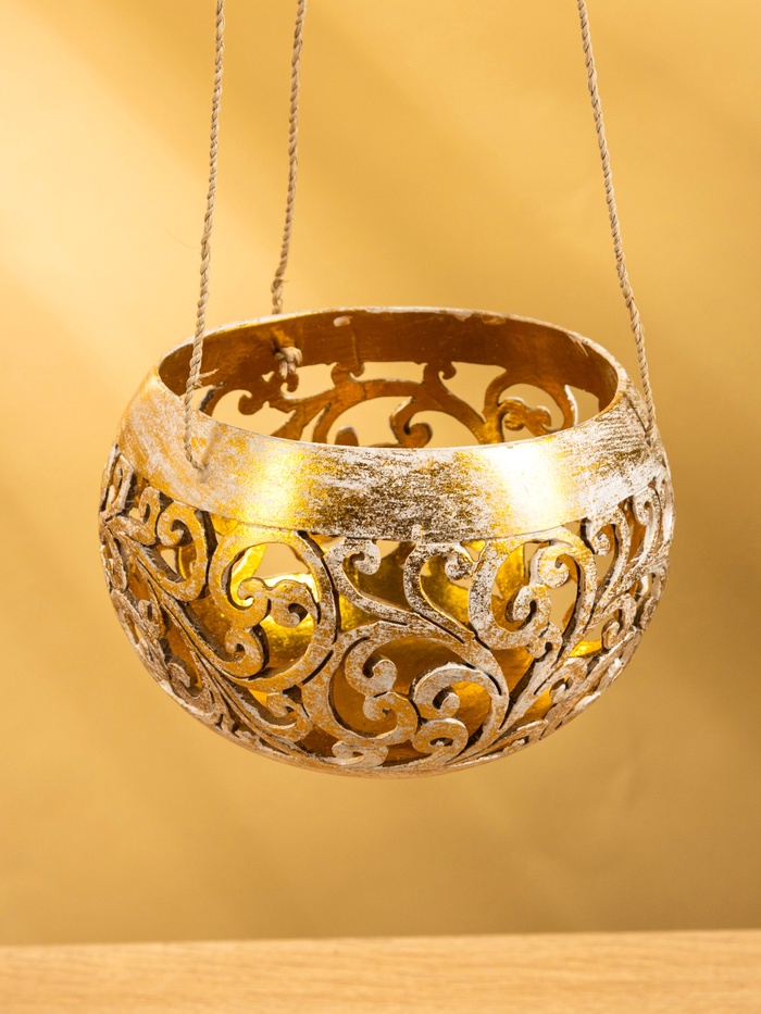 Подсвечник подвесной из кокоса, 14×14×10 см, бело-золотой