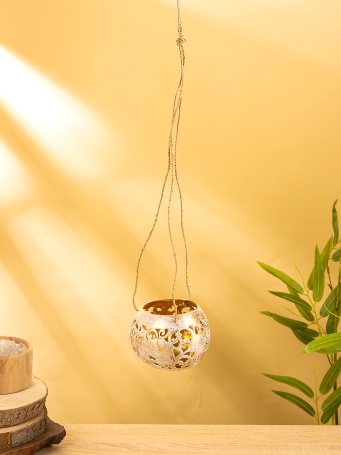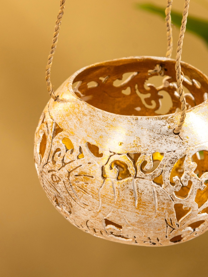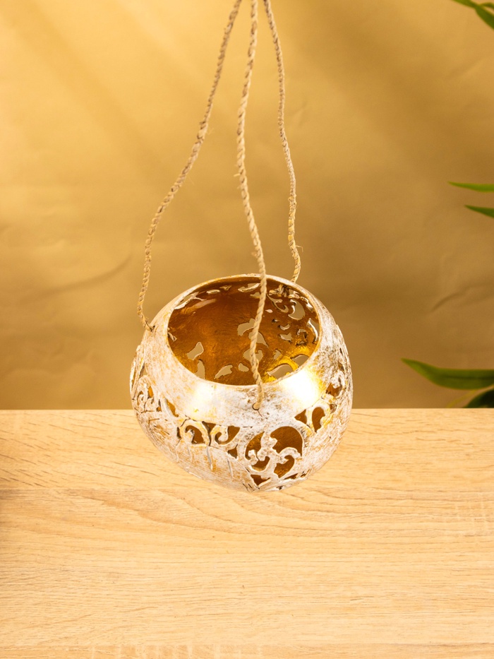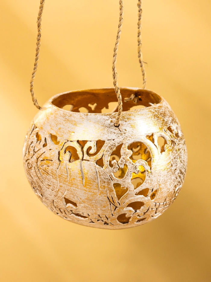 Подсвечник подвесной из кокоса, 9-11 см, бело-золотой