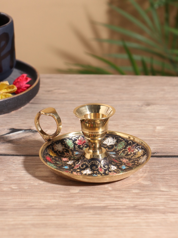 Подсвечник с блюдцем, 10×11.5×5.5 см, латунь