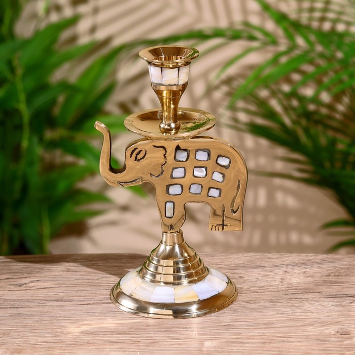 Подсвечник «Слон», 9×9×15 см, латунь, перламутр