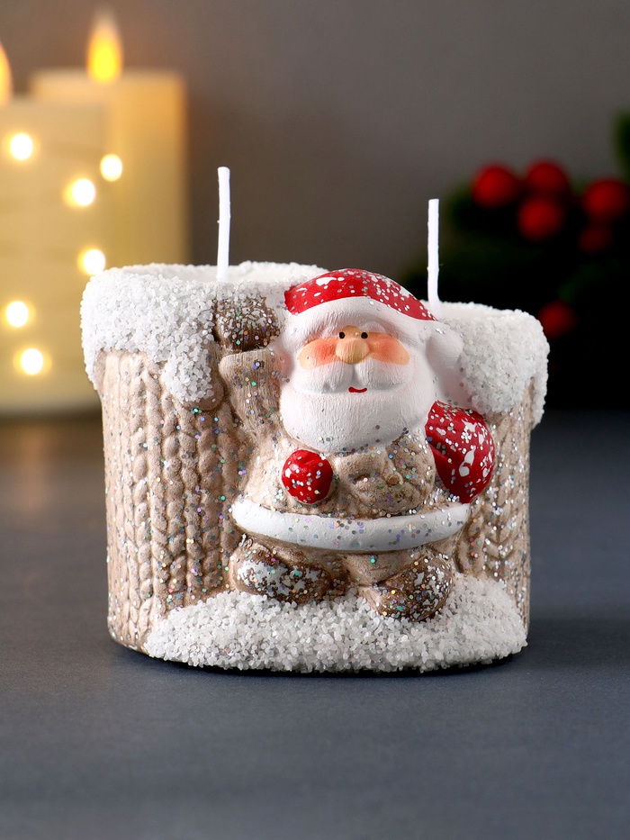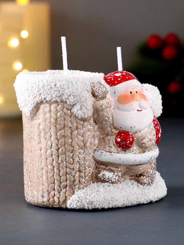 Подсвечник со свечами «Дед Мороз в бежевом кафтане», на 2 свечи, керамика, 7.5×5.5×6.5 см, МИКС