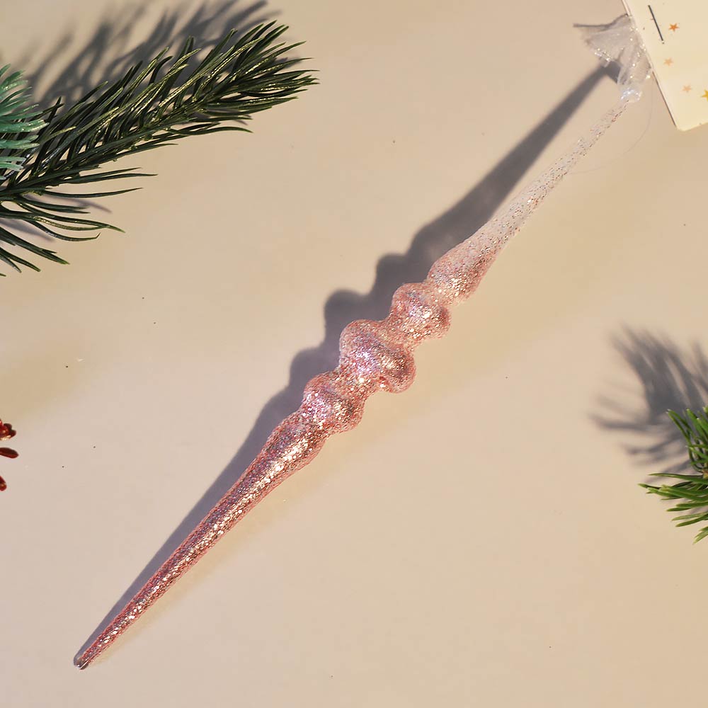 Подвеска "Искристая сосулька" 12см, белый/розовый
